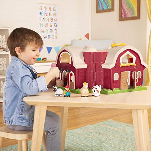 Battat BT2626C1Z Boerderijspeelgoed, grote schuur met boerderijdieren, varken, paard, koe, schapen en boeren, set voor kinderen vanaf 18 maanden (6 delen),Rood